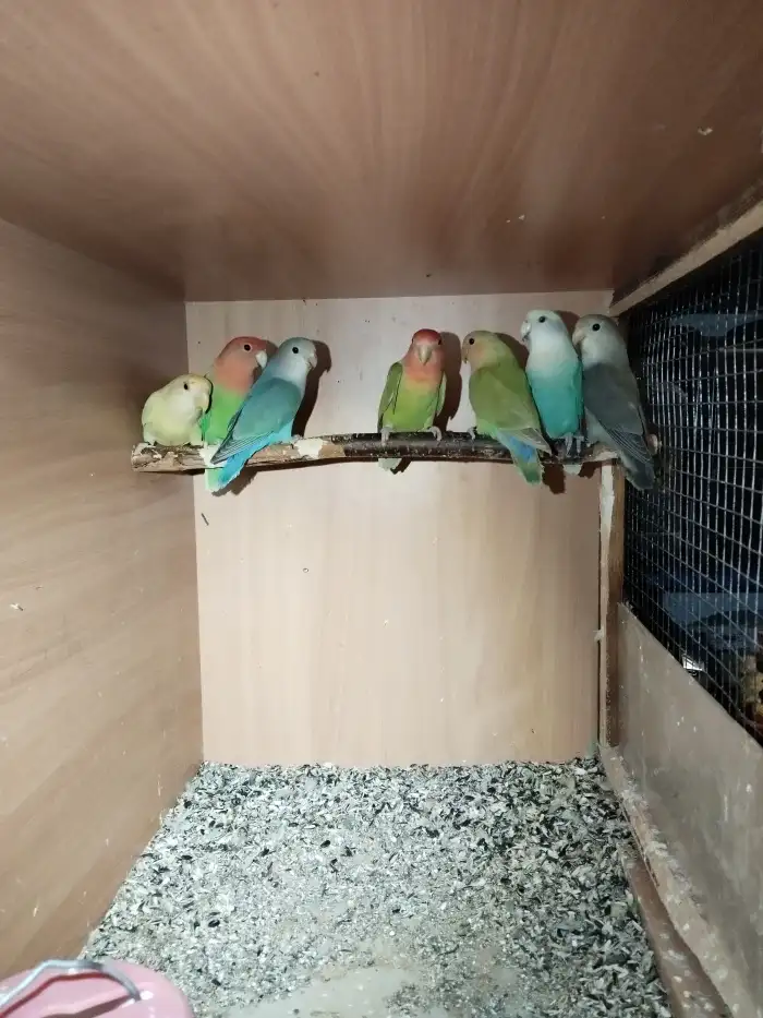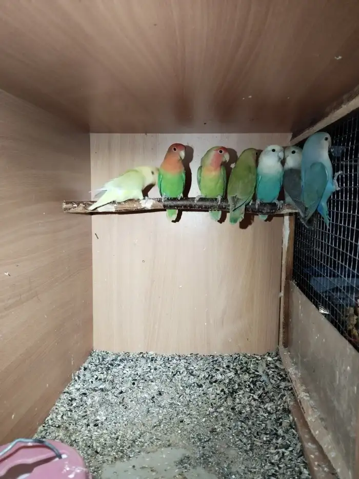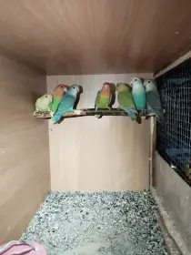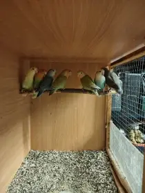 Prodám Agapornise růžohrdlého - Prodám agapornise růžohrdlé: odchováni pod rodiči. od 21.11. vylétly z budky. Bez určení pohlaví.