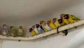 Prodám Agapornise škraboškového - Poslední odchovy agapornisů škraboškových roku 2025 a modrá samice (2024) po výstavách, pohlaví určeno DNA testy. 2x violet pastel D modrý (1000 Kč/ks), 1x SF Edged m...