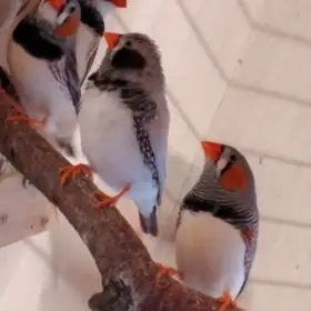 Prodám Zebřičku pestrou - Prodám zebřičky - 3 samci a 3 samice. Odchov v roce 2025. Příbuzné, nekroužkované.