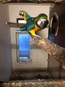 Prodám Aru araraunu - Prodám šestiměsíční samičku Ary ararauny. Odchov plně pod ochočenými rodiči. Vhodná do chovu i na domácího mazlíčka. Nyní s námi v domě, uvyklá na normální chod domácnosti i obča...