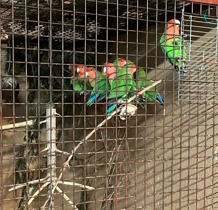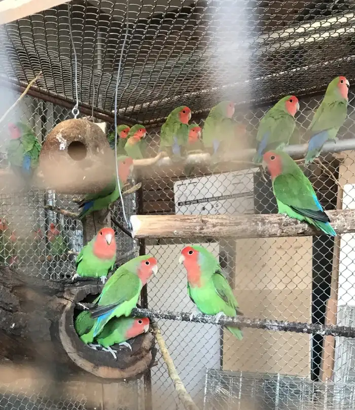 Prodám Agapornise růžohrdlého - Redukce ptactva - stáří údajně rok 2024 (taky jsem koupil) - Hnízdí, ale o vejce se nestarají, takže vhodní spíše pro radost než na chov. - když se naučili na klec,...