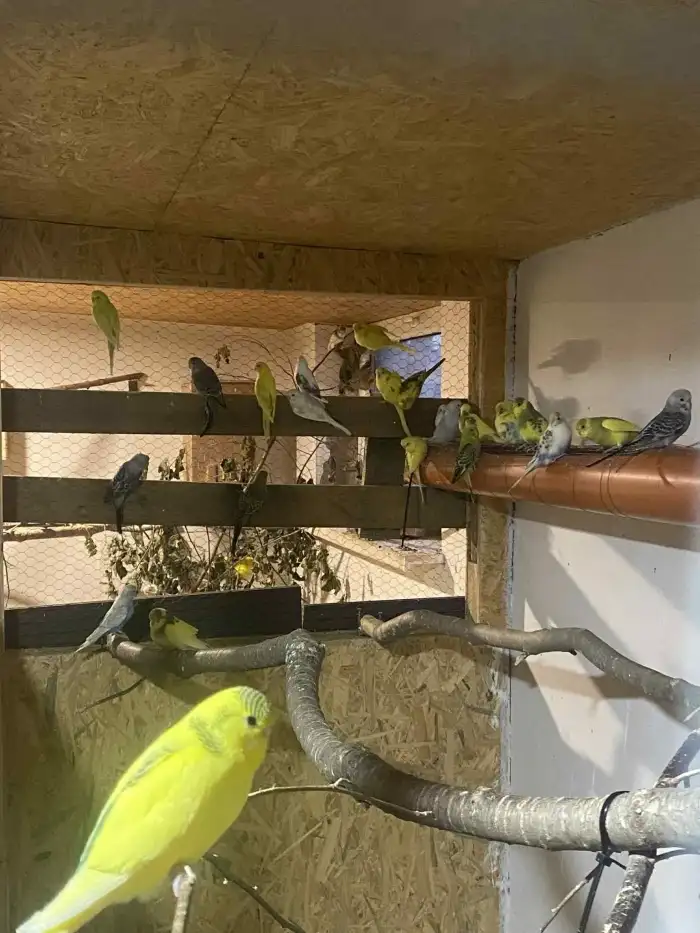 Prodám Andulku vlnkovanou - Prodám andulky rok 2025 ( srpen - září ), venkovní voliéra, okroužkované, různé barvy - odstíny zelené, modré, světle modré s bílými křídly, bílé...atd.