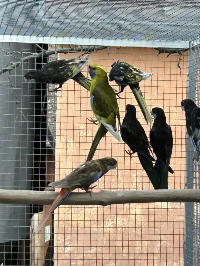 Prodám Roselu pestrou - Prodám rosela pestrá 0.2 a 2.0 černá straka vše kroužek 25 krásné velké kusy mohu vzít na Kladno