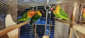 Prodám Agapornise Fišerova - Prodám pap. fišery, omezeně škraboškáče 100% přírodní rok 025, vše pevný kroužek top stav. Možno sestavit u fišeráků nepříbuzné páry. Cena fišeráci 400 kč, škraboškáci 500...