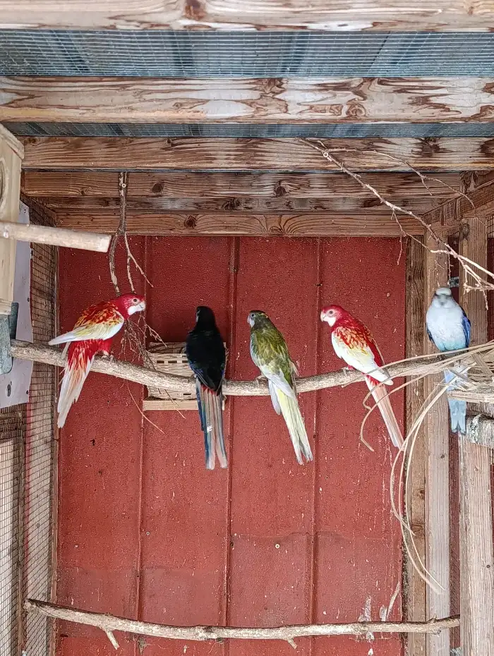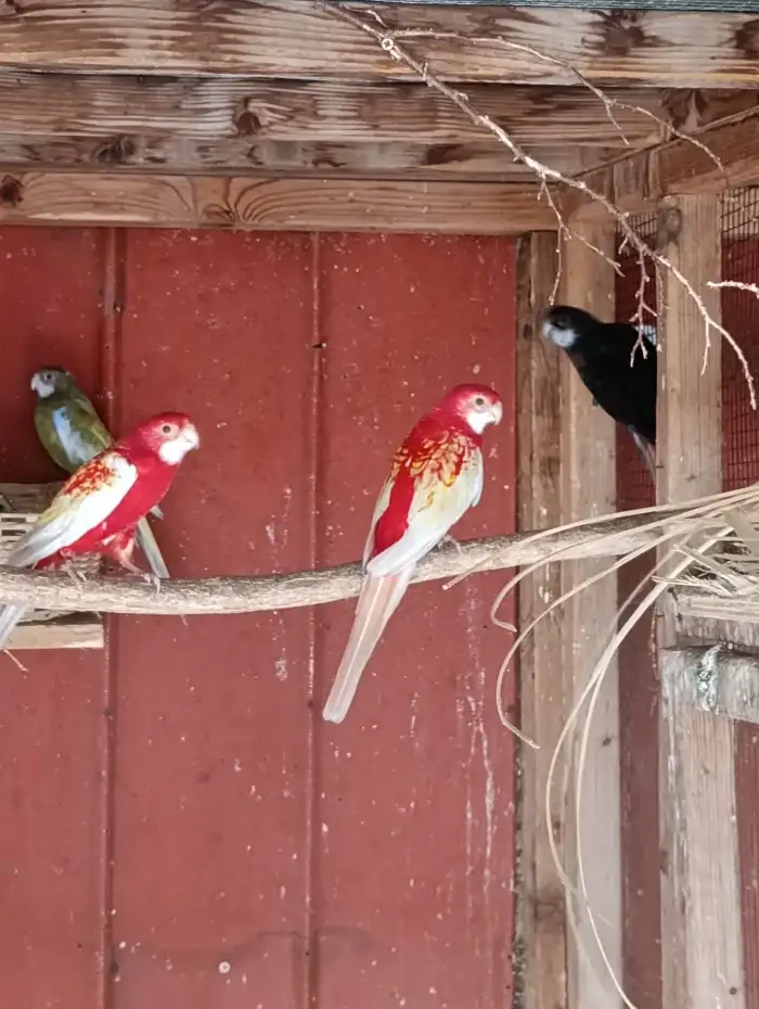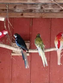 Prodám pár alexandrů malých 7 letých samice modrá samec zelený ruším chov.Cena za pár 1500 kč rozela penant červená 2 ks. 600 kč 1 ks. papoušek nádherný 1 ks 450kč a andulky 80 kč. vše lonské.