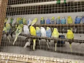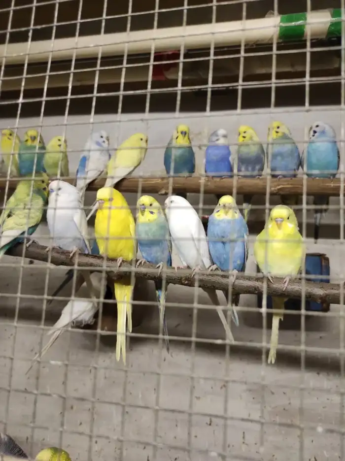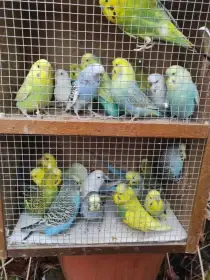 Prodám Andulku vlnkovanou - Nabízím texasky zelené a modré řady kroužek 25 možné složit nepribuzné páry.
