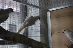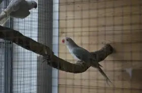 Prodám Alexandra malého - Dobrý den, prodám samici 2025 ochočená, s papírem DNA, violeta (Je možnost koupit s klecí +500,-, nechám k tomu i ta dřevěná bidélka, pokud by byl zájem)