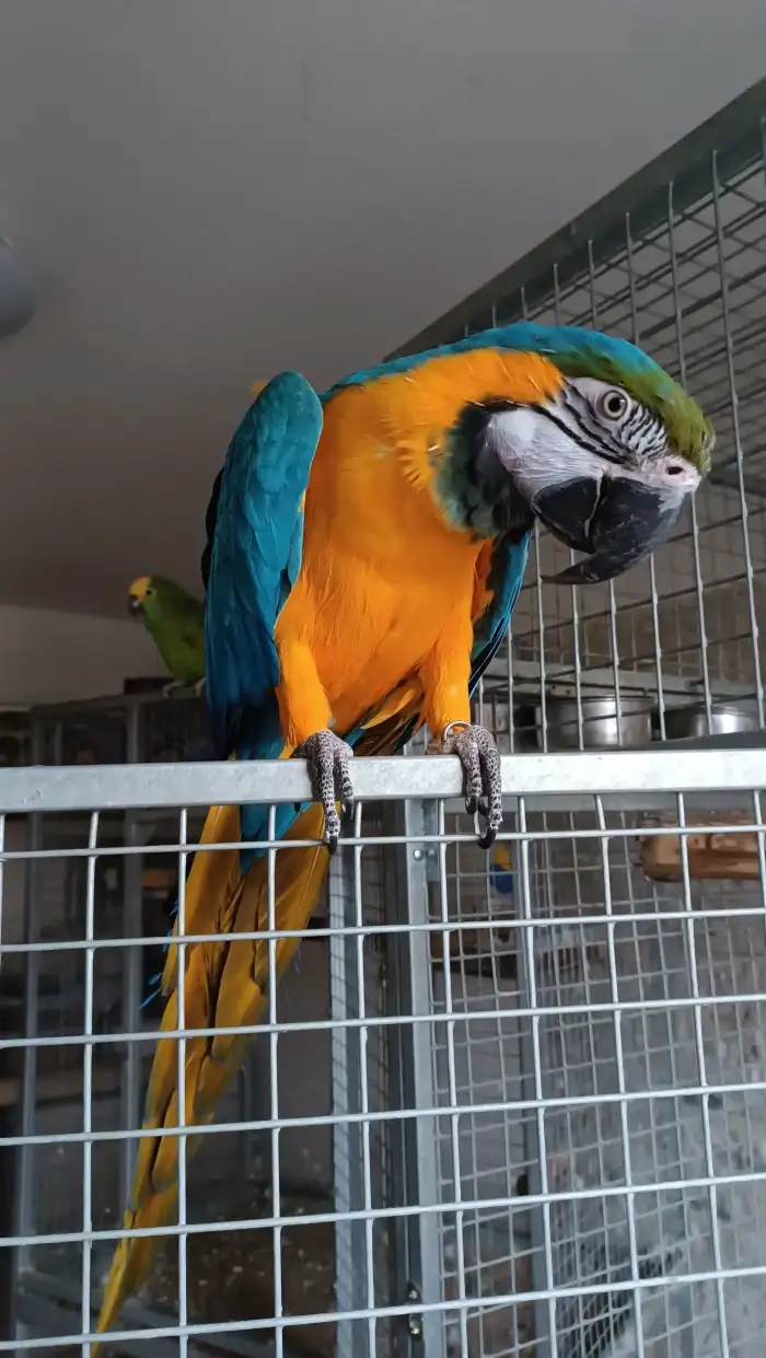Prodám Aru araraunu - Prodám 1,1 Ara Ararauna rok 2024. Krásní, silní ptáci. Testy DNA. Ručně dokrmení. Zvyklí na člověka. Prodávám z důvodu nedostatku místa. Pouze v celku. Ptáci jsou na sebe zvyklí...