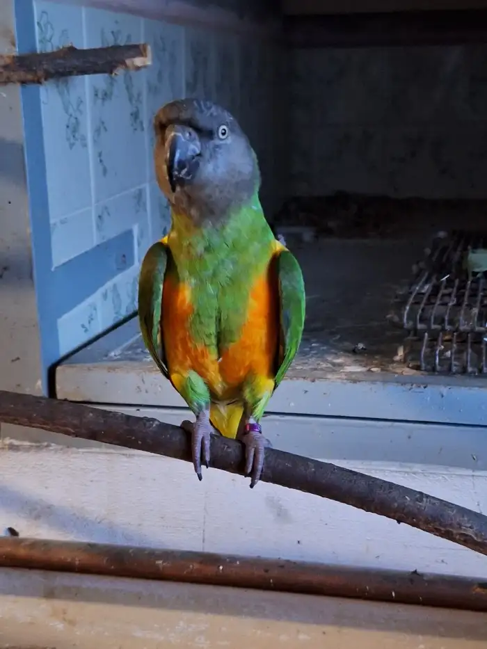 Prodám Papouška senegalského - starší chovný samec oranžovobřichý 100% stav. Úhyn samice.