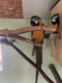 Prodám Aru araraunu - Prodám 1,1 Ara Ararauna rok 2024. Krásní, silní ptáci. Testy DNA. Ručně dokrmení. Zvyklí na člověka. Prodávám z důvodu nedostatku místa. Pouze v celku. Ptáci jsou na sebe zvyklí...