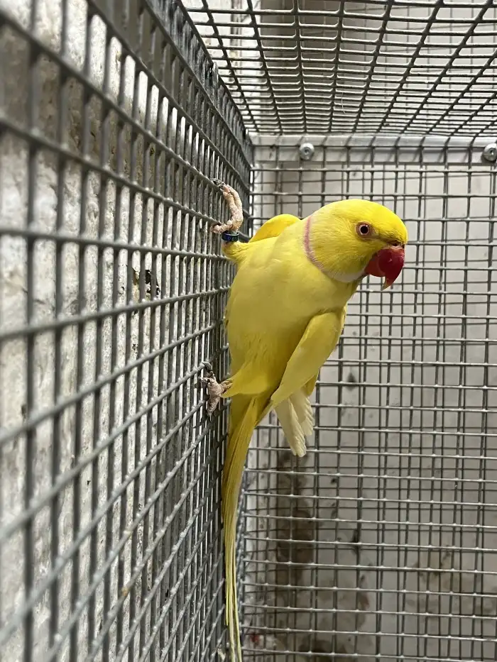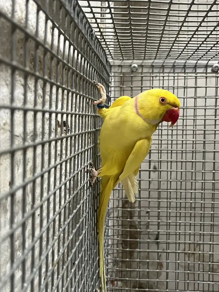 Prodám Alexandra malého - 0,1 palid pastelová tyrkysová, drobná vada křídla lehce svěšená, lítá, rok 2022