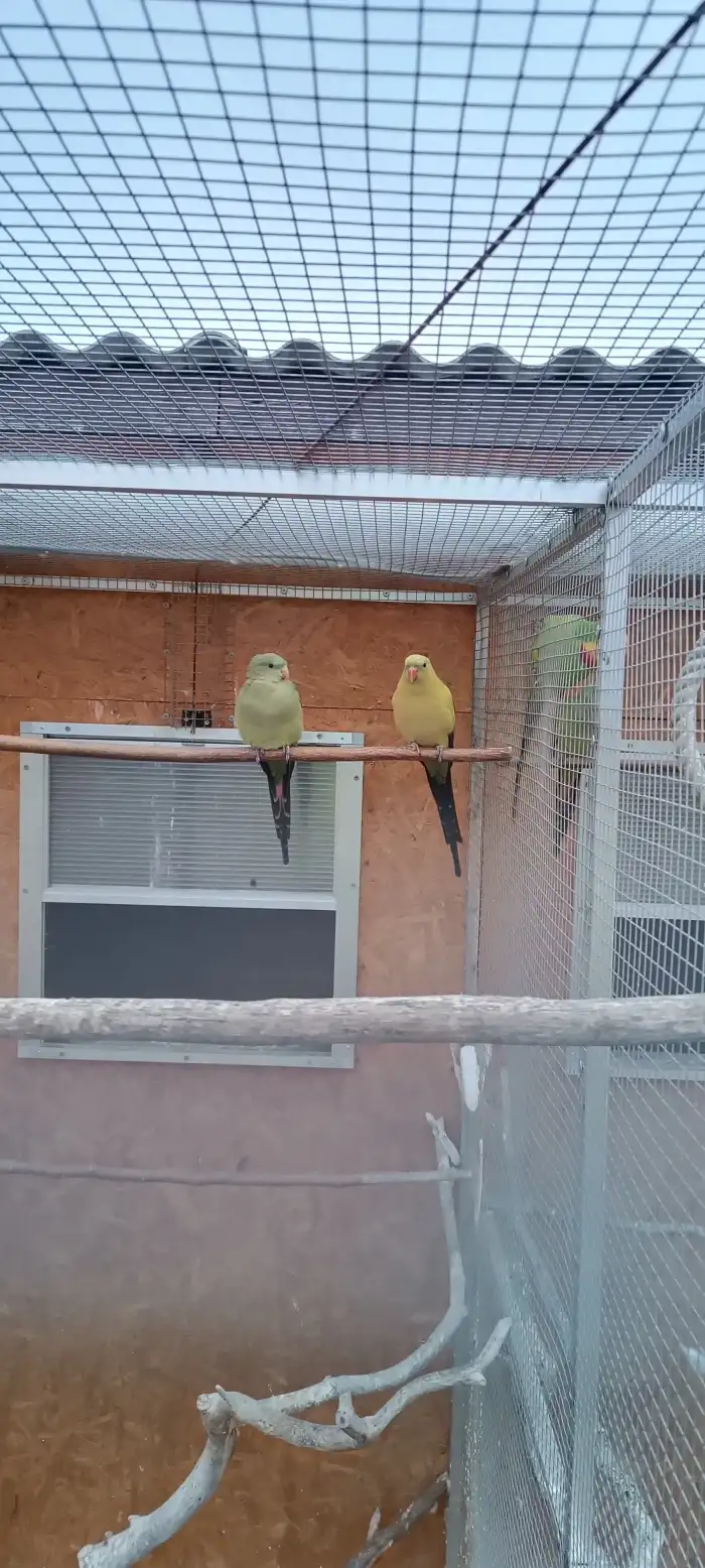 Prodám Papouška horského - Prodám čtyři loňské mláďata vypadá to na tři samice a jednoho samce. Jsou celoročně ve venkovní voliéře. Odběr Slaný cena 600Kč
