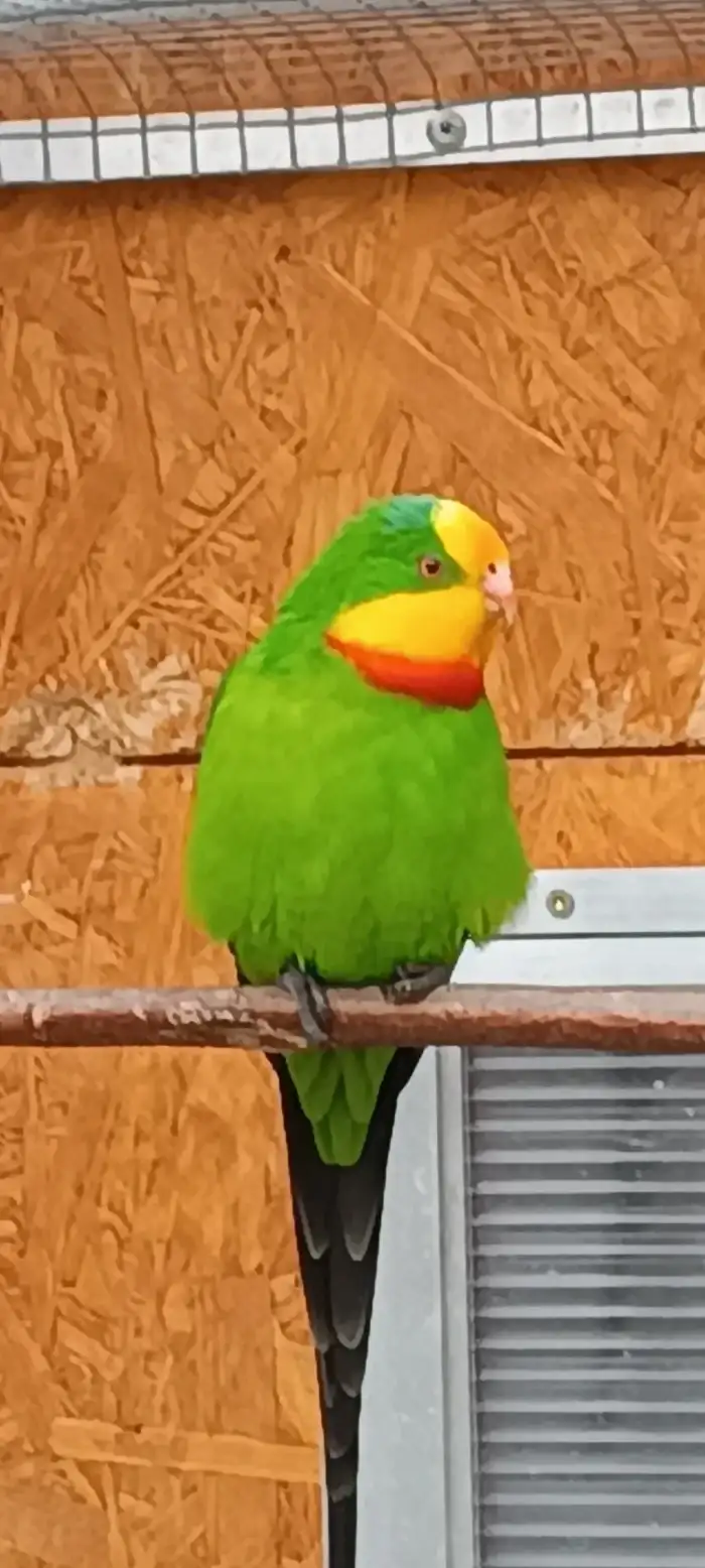 Prodám Papouška nádherného - Prodám chovný pár Papouška nádherného, pevný kroužek 21. Z velké venkovní voliéry. Loni 3 mladé, 2 samci možno ještě koupit loňské.