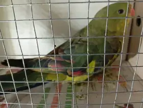 Prodám Papouška horského - Prodám čtyři loňské mláďata vypadá to na tři samice a jednoho samce. Jsou celoročně ve venkovní voliéře. Odběr Slaný cena 600Kč