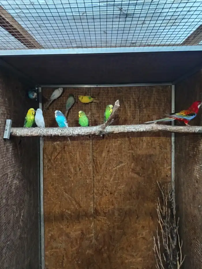 Prodám Roselu pestrou - Prodám roselu pestrou 0.1 Černá Opalin/ Modrá, Pastel? r.25 Pevný kroužek, z venkovní voliéry. #Rozela