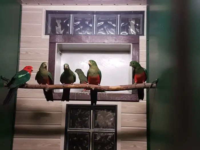 Prodám Papouška královského - samec 1.0, kroužek 2018, chovný samec. Důvodem je úhyn samice. Celoroční odchov ve venkovní voliéře, zdravý silný pták.