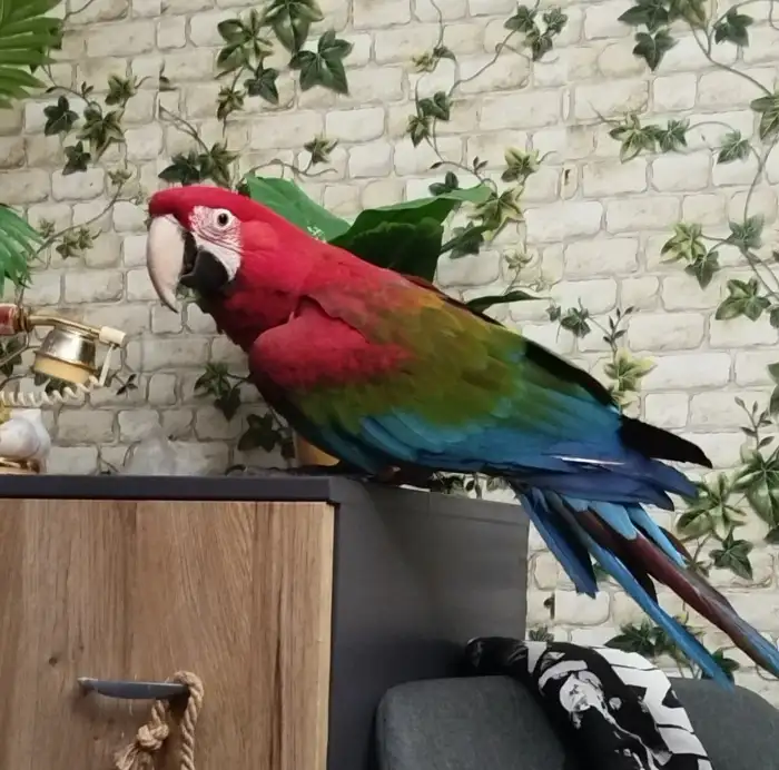 Prodám Ara zelenokřídlého - Loňský sameček odchovaný pod rodiči silný pták pohlaví určeno vyšetření na APV PBFD negativní kroužek jen do chovu