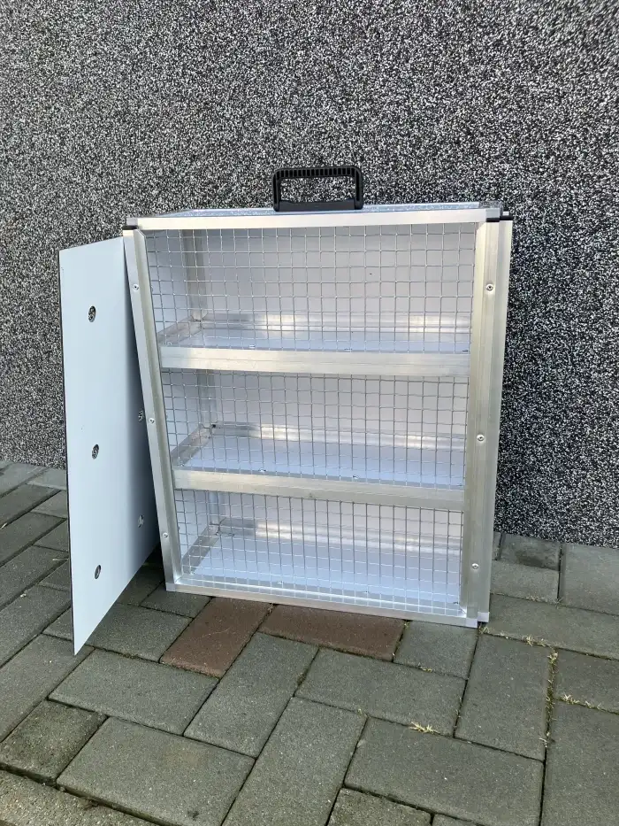 Nabízím přepravky z hliníkových profilů a sendvičových desek. Jejich hlavní výhody jsou nízká hmotnost, jednoduše se vyčistí a hlavně jsou bezpečné pro papoušky.