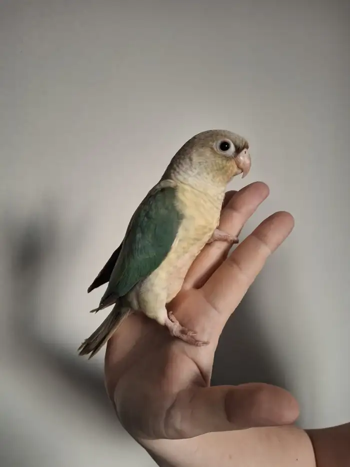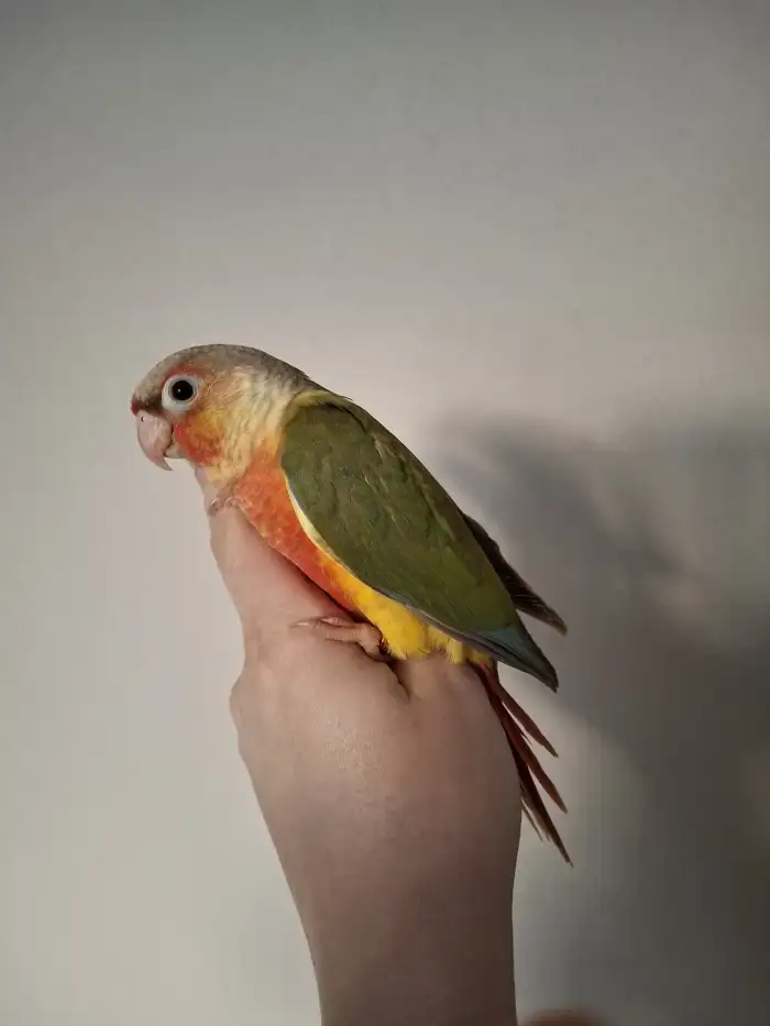 Prodám Pyruru zelenolícího - Nabízím pyruru zelenolici v květnu bude mít 3 roky je ručně dokrmený má test dna je to sameček nesnese se s druhýma je mi ho líto ale jinak to nejde.mutace hypoxantha