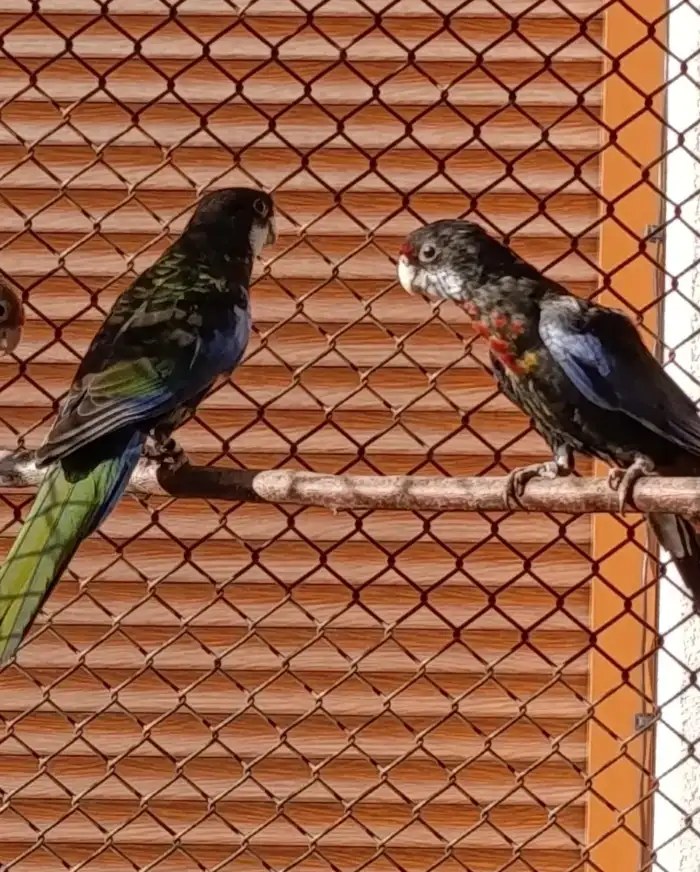 Prodám Roselu pestrou - Prodám 2x samice Rosela pestrá černá opalinová. Kroužkované, rok 2025. Z venkovní voliery.