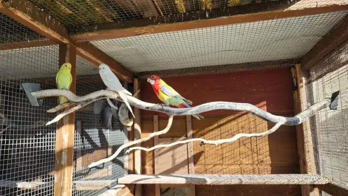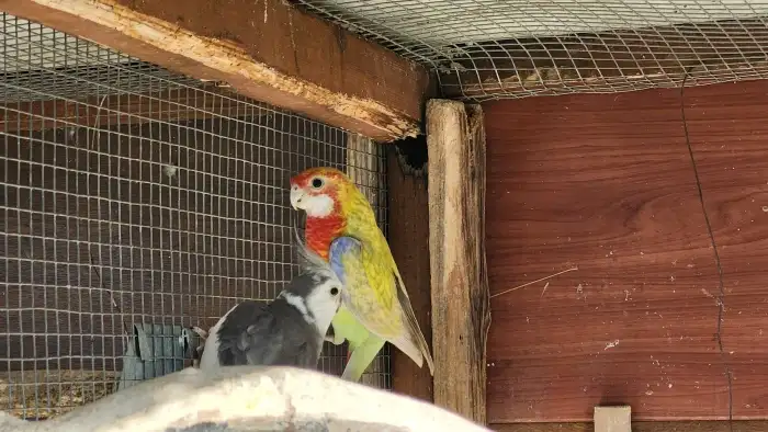 Prodám Roselu pestrou - Prodám 2x samice Rosela pestrá černá opalinová. Kroužkované, rok 2025. Z venkovní voliery.