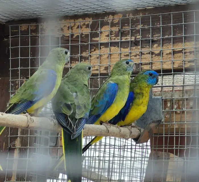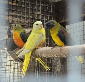 Prodám Neofému tyrkysovou - Nabízím k prodeji dvouletý chovný pár neofémy tyrkysové, samička zlatožlutá a samec přírodní. Jsou celoročně ve venkovní voliéře se závětřím. Cena za oba Kč 1000.-