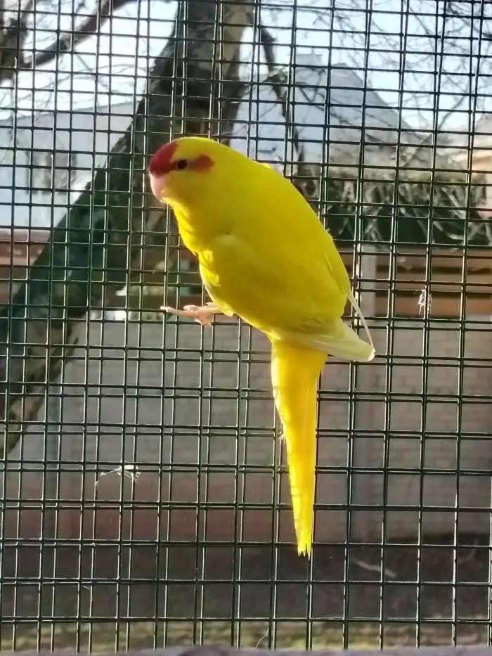 Prodám Kakariki rudočelého - Prodám 2.0 Kakariki rudočelý, v mutaci Creamino(krémino), r.25. Z venkovní voliéry