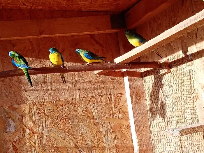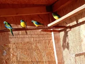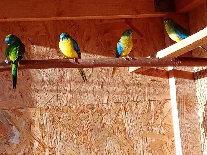 Prodám Neofému tyrkysovou - Nabízím k prodeji dvouletý chovný pár neofémy tyrkysové, samička zlatožlutá a samec přírodní. Jsou celoročně ve venkovní voliéře se závětřím. Cena za oba Kč 1000.-