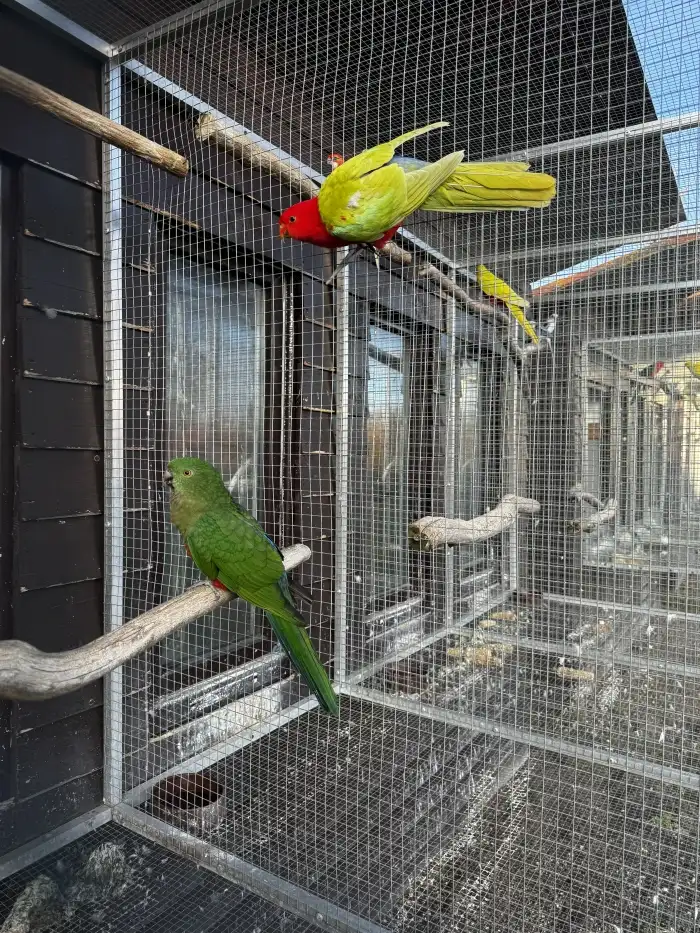 Prodám Papouška královského žlutého - Prodám papoušky královské žluté, kroužkované, chované ve venkovních voliérách a odchované vlastními rodiči. 2.0 p. královský žlutý r. 2025 0.1 p. královský šť...