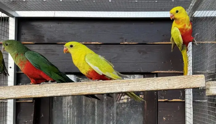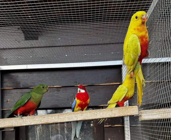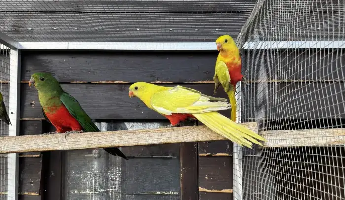 Prodám Papouška královského žlutého - Prodám chovný pár papouška královského žlutého, kroužkované, chované ve venkovní voliéře: 1.0 - p. královský žlutý 2019 0.1 - p. královský šť. na žlutou 2022...
