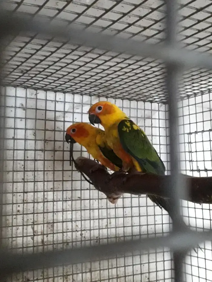 Prodám Aratinga slunečního - Prodám aratingy sluneční 2,2 vylíhlé pod rodiči 6/2025 z venkovní voliéry kroužkované s testem DNA. Cena 3000,-Kč
