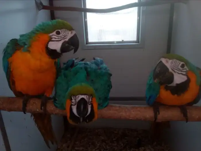 Prodám Aru araraunu - Z rodinných důvodů rušíme chov prodáváme chovného samce (2012). Byl v páru se samicí, která mu začala škubat peří na hlavě a na krku. Samice je již prodaná a peří mu dorůstá. Pro...