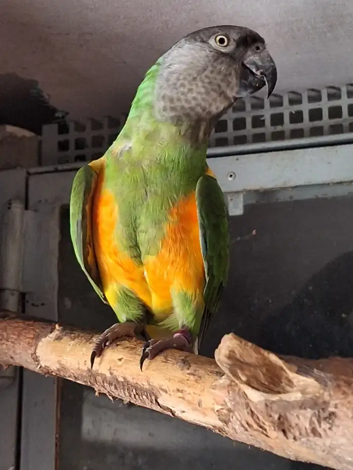 Prodám Papouška senegalského - Prodám samce papouška senegalského. Pohlaví určeno testem dna. Líhnutý květen. Odchovaný pod rodiči. Kroužkovaný rok 25.