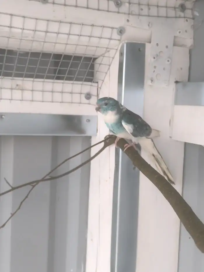 Prodám Papouška zpěvavého - Prodám 2.0 papoušek zpěvavý oranž lutino/rubino příbuzní, oba kroužek 2025. Ihned do chovu. Jen volat.