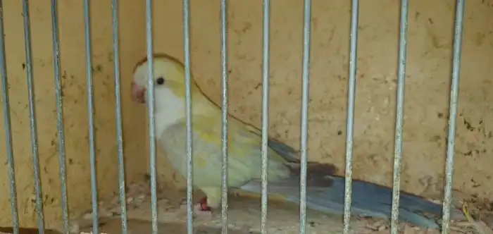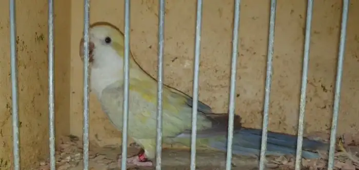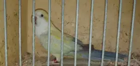 Prodám Mníška šedého - Prodám 0.1 mníška lutino, rok 25 kroužek, na každé noze chybí jeden prstík ( zadní kratší ).