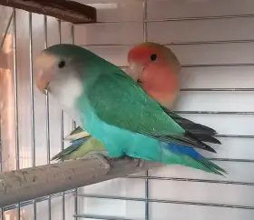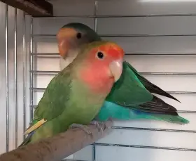 Prodám Agapornise růžohrdlého - Dobrý den, nabízím k prodeji pár Agapornis růžohrdlý samička lutino oranžovolící chybí dva tři drápky, sameček modrý tyrkys. Oba rok 2025 nepříbuzní, vylíhnutý v červe...