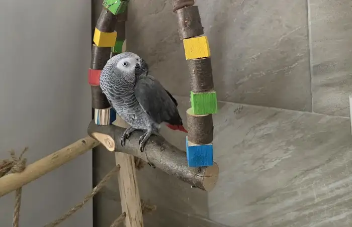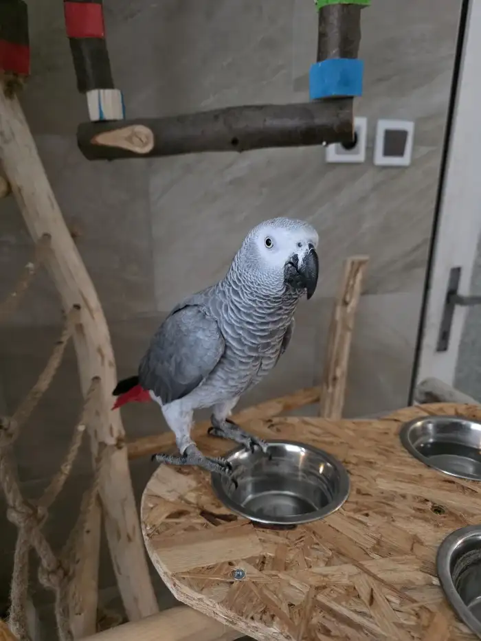 Prodám Žaka velkého - Prodám letošní žako, sameček, ručně dokrmený mazel, společenský, učíme na kšandičky. Testy DNA, Cirkoviry, povinné doklady CITES.