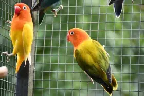 Prodám Agapornise Fišerova - Prodám roční Agarponis Fisery i s klecí.Jsou roční už přímo do chovu.Praha Horní Měcholupy Praha 15.Netopil.