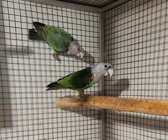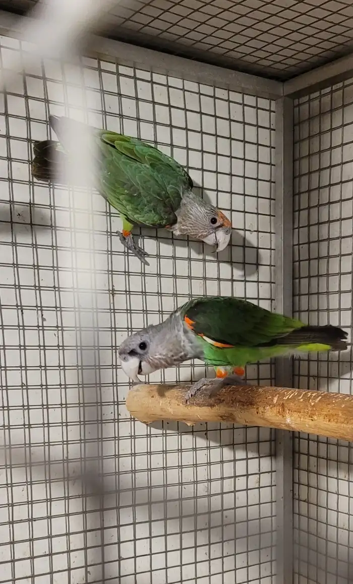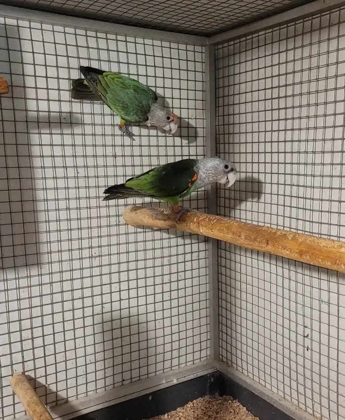 Prodám Papouška kapského - prodám přírodní odchov 3/2025 Poicephalus fuscicollisis z vlastního chovu. Bez vad, silné kusy, stále umístěni u chovného páru. Na foto je chovný pár nahoře a mláďata dole....