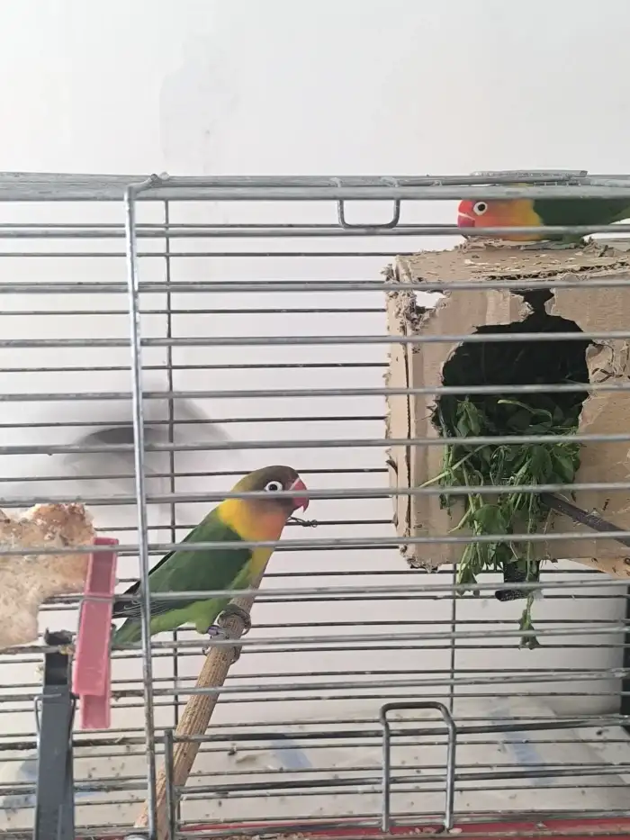 Prodám Agapornise Fišerova - Prodám roční Agarponis Fisery i s klecí.Jsou roční už přímo do chovu.Praha Horní Měcholupy Praha 15.Netopil.