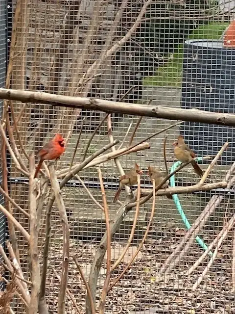 Prodám Papouška červenokřídlého - Prodám chovný pár papoušků cervenokridlych, 4x odchovali až na bidlo, venkovní voliera, pozůstalost. Cena 4000,- Kč