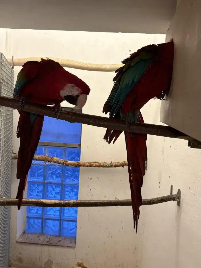 Prodám Ara zelenokřídlého - Predám dvoch samcov 2025 odchov pod rodičmi, čípované plne samostatné.