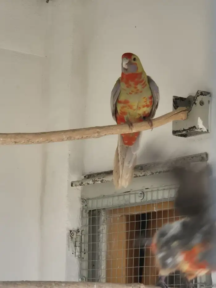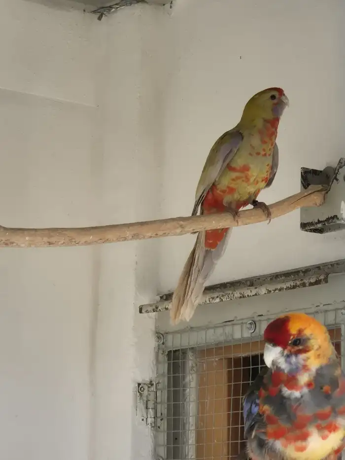 Prodám Roselu penant - Nabízím harmonizující páru penanty straky pomeranč samice skořice pomeranč kroužek 23 a samec pomeranč kroužek25