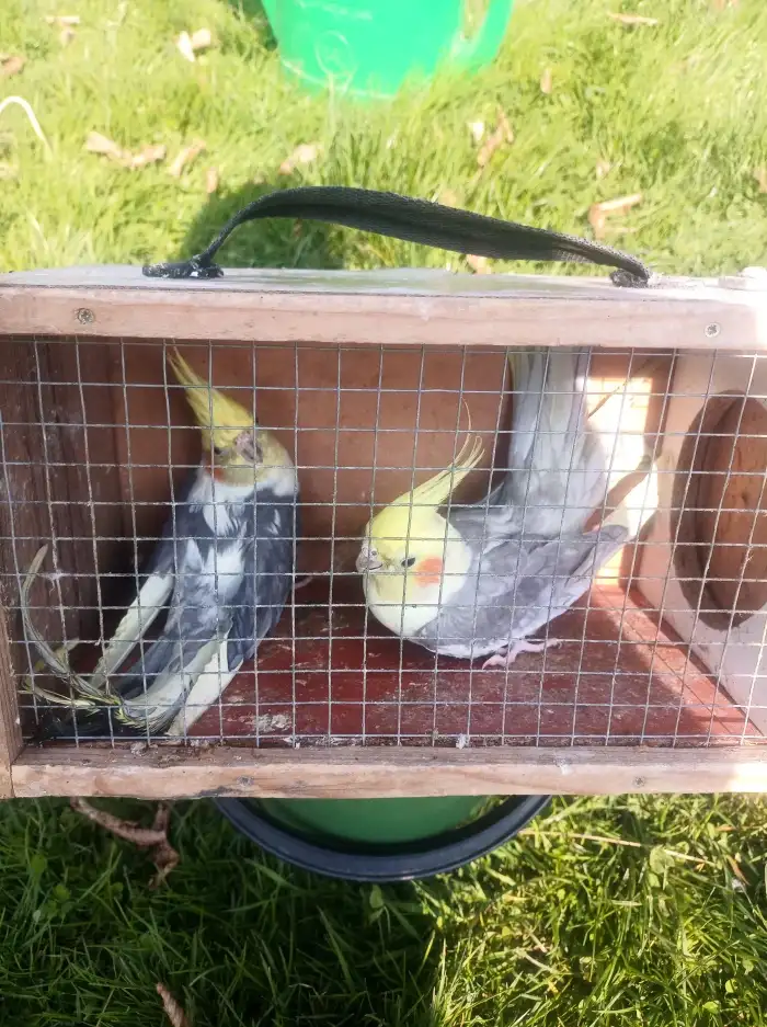 Prodám Korelu chocholatou - Prodám dvě korely, zvyklé být celoročně venku. Žlutá je odchované mládě, zvyklá zobat z ruky, druhá se přidá, když si na člověka zvykne. Jen spolu a do voliéry, kde se můžo...