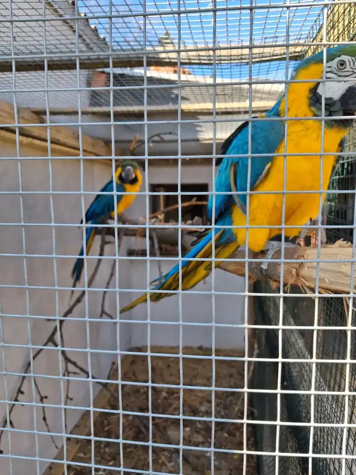 Prodám Aru araraunu - Prodám polokrotkého samce ara arauny, stáří 10 let. Původně ochočen i mluví, nyní druhý rok se samicí, ale je v nesouladu se samicí. Byl zvyklí, že vše bylo podle něj. Má vadu kř...