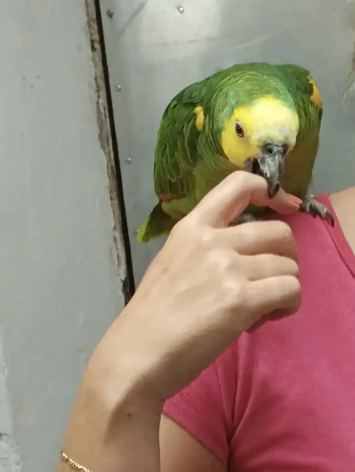 Prodám Amazoňana modročelého - Amazoňan modročelý - prodám sestavený pár amazoňanů modročelých, samec je mládě z mého chovu, z roku 2025, kroužkovaný není, ale mám k němu kroužek i test DNA, samice s...