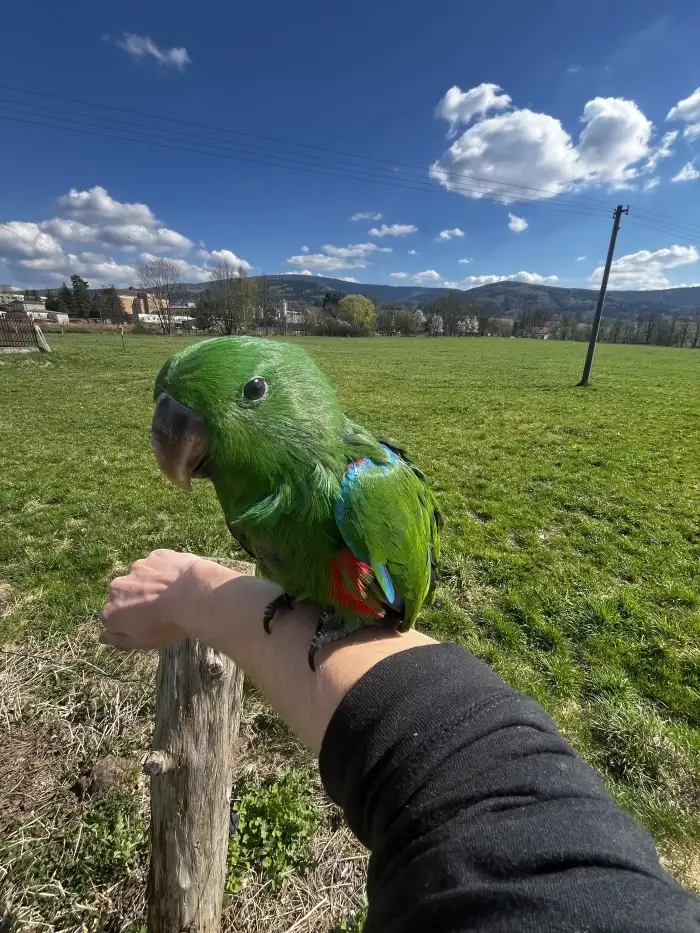 Prodám Eklekta polychlora - Prodám mládě samicky eklektus polychros.Prosinec 2025,mladé ke odchované pod rodiči.jedna se o krásný velký kus bez vad