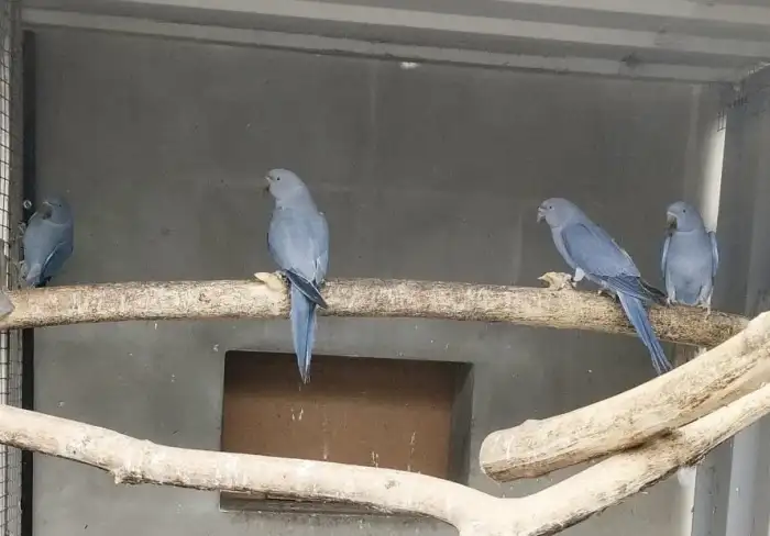 Prodám Alexandra malého - 0,1 palid pastelová tyrkysová, drobná vada křídla lehce svěšená, lítá, rok 2022