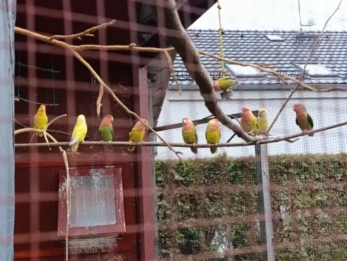 Prodám Agapornise Fišerova - Prodám Pár Fiseraku a Kanárka i s klecí.Horni Měcholupy Praha15.Netopil