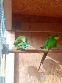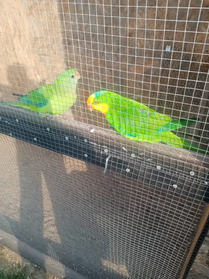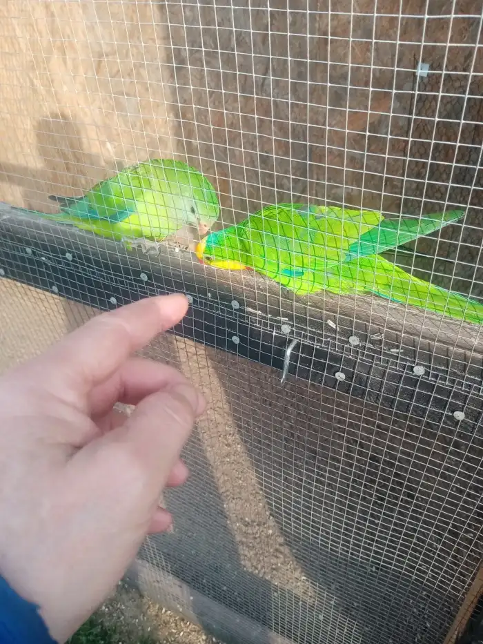 Prodám Papouška nádherného - Prodám 2 samce papouška nádherného, narození v květnu 2025, kroužkovaní, celoročně ve venkovní voliéře.